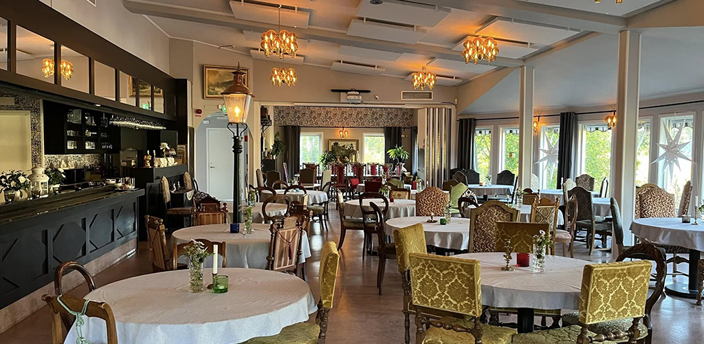 Mellan salarna finns en komplett restaurang så det går att ordna rätt stora fester ifall man skulle vilja ha den ambitionen.